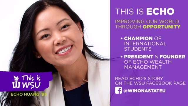 We are pleased to announce that Echo Huang, CFA, CFP®, CPA was interviewed by Maddie Swenson from Winona State University recently and is featured today in the “This is WSU” campaign: